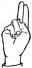 На ћирилици написано КРИСТИЈАН ГАРОЊА састоји се из 15 слова [?]. Исписано ћириличном једноручном азбуком за глувонеме: